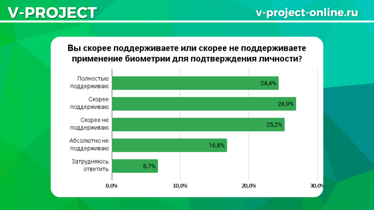 Было важно узнать и то, поддерживают ли респонденты использование биометрии для подтверждения личности. Результаты вышли такие: