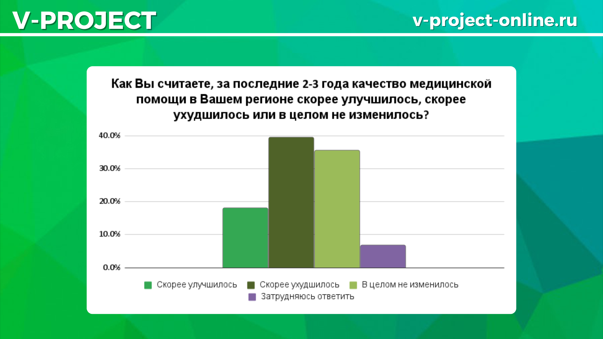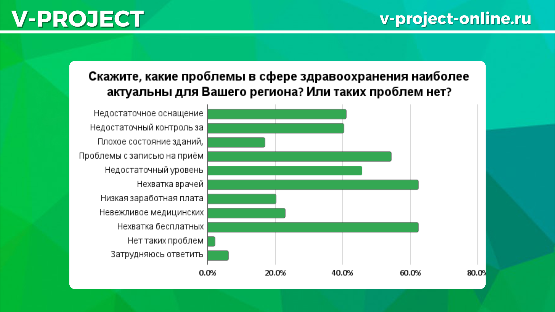 Команда V-Project провела опрос, чтобы узнать, как россияне оценивают текущее состояние медицины и какие сегодня конкретные проблемы требуют неотложного решения.