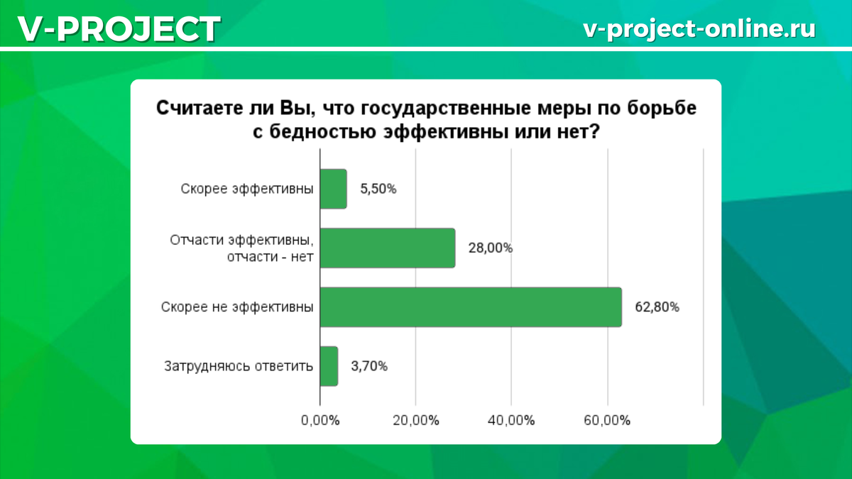 Сразу после мы решили узнать, верят ли россияне в государственные меры борьбы с бедностью. Итак: