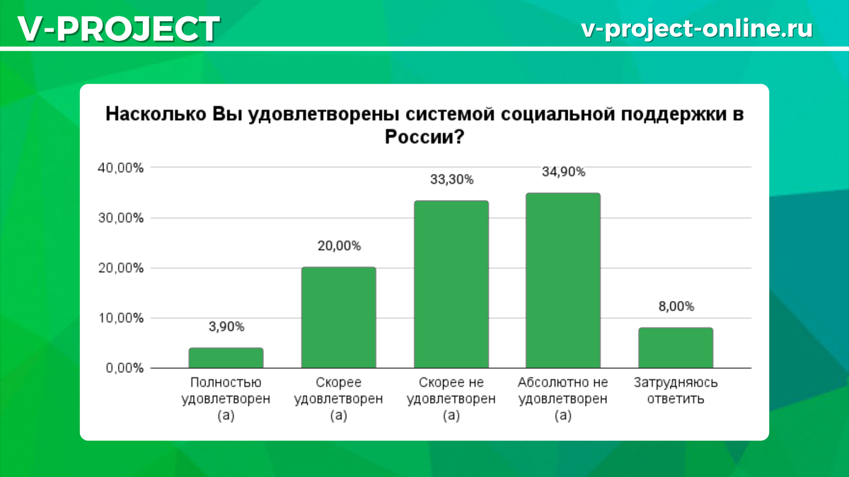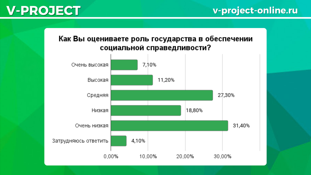 Команда V-Project провела исследование, чтобы выяснить, насколько справедливой кажется россиянам социальная система. Есть ли равные права и возможности для россиян? Доступны ли медицина, образование, социальные льготы на высоком уровне? Также узнали, как государство работает над поддержкой граждан. На все вопросы отвечаем ниже!
