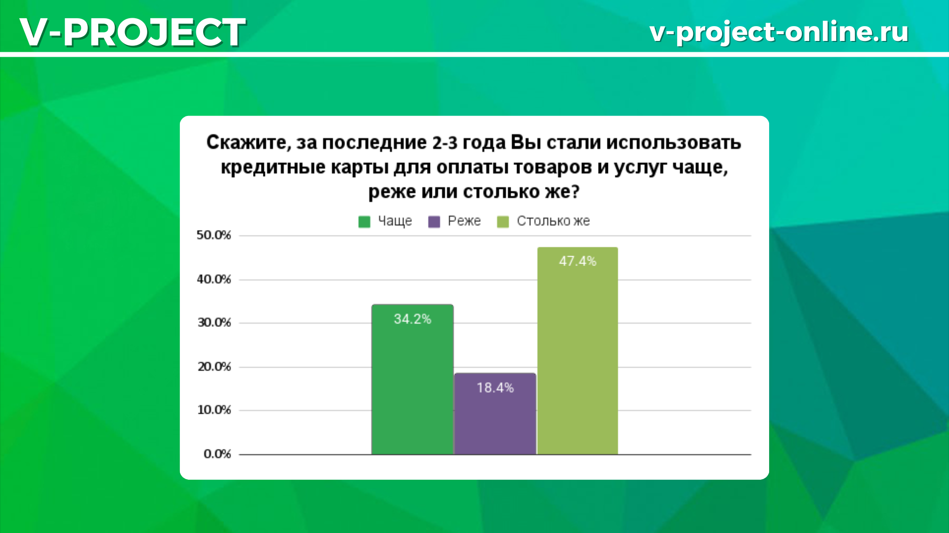 Треть респондентов за последние 2–3 года стали использовать кредитные карты чаще, и почти половина пользуются ими столько же, сколько и раньше:
