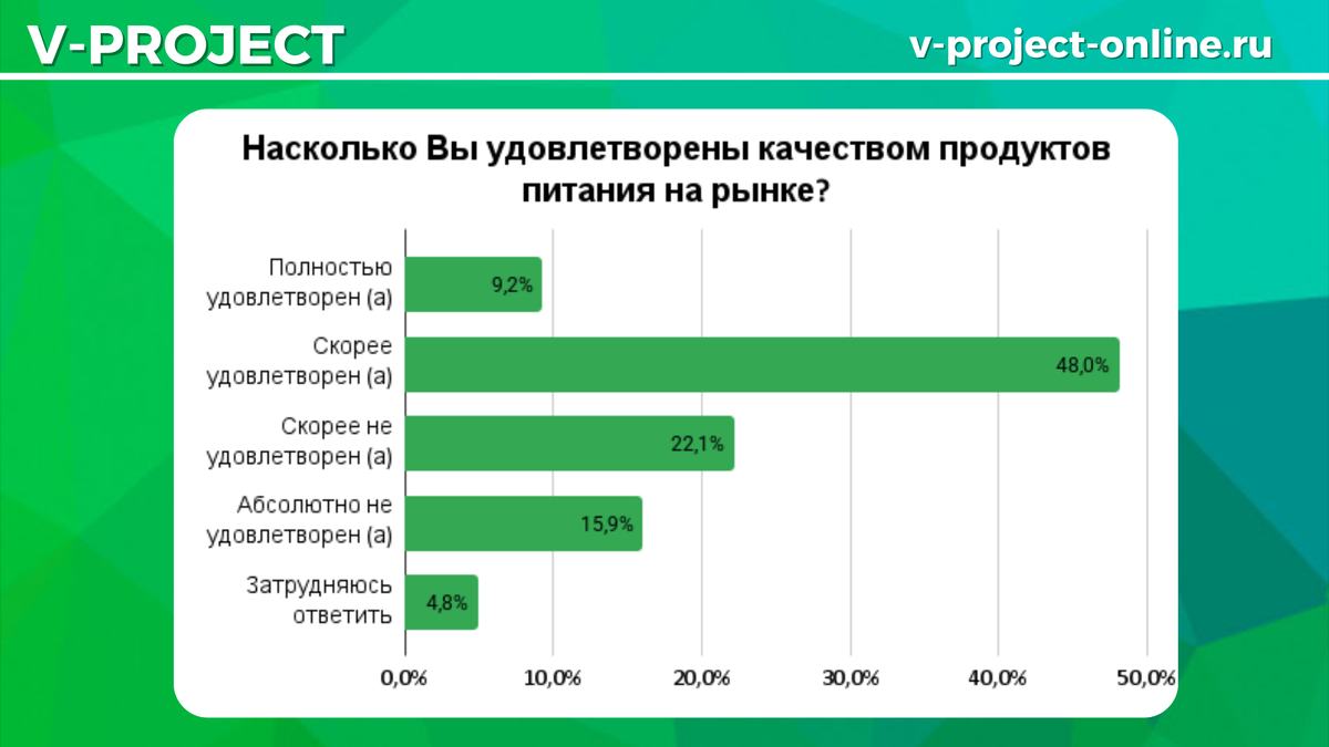 Чтобы точно оценить ситуацию, мы спросили у опрошенных: «Насколько вы удовлетворены качеством продуктов питания на рынка?».