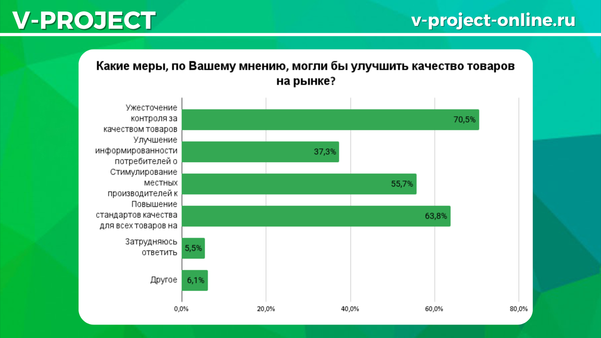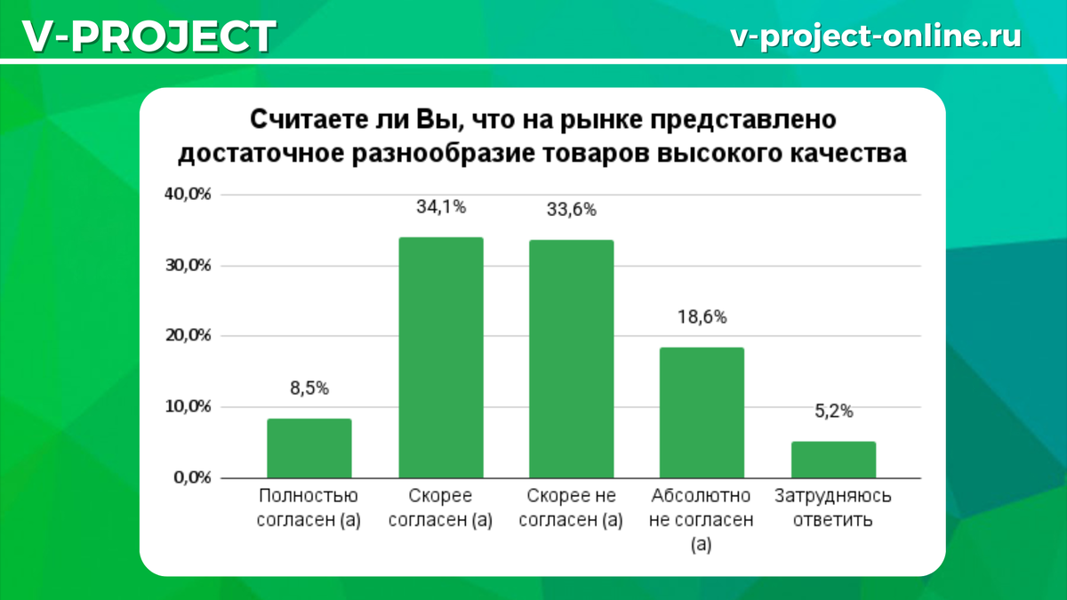 Получается, что рынок, по мнению респондентов, не насыщен действительно качественными товарами – многие хотели бы видеть больше достойных вариантов. С чем же это связано? Посмотрим далее!
