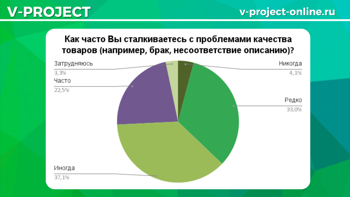 Очевидно, что доверие к качеству товаров невысокое, ведь треть покупателей регулярно сталкиваются с разочарованием.