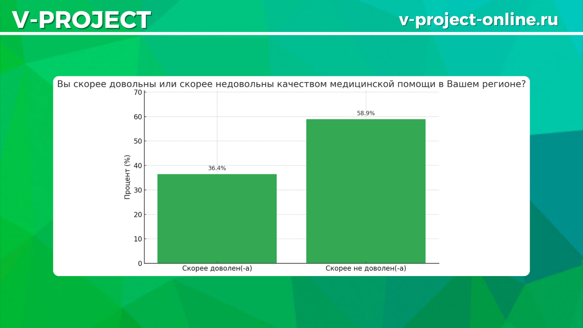 Негативное отношение к медицине обусловлено недовольством граждан тем, как их лечат. Результаты опроса показали, что лишь 36,4% респондентов довольны врачебными услугами, в то время как 58,9% – не удовлетворены ими.