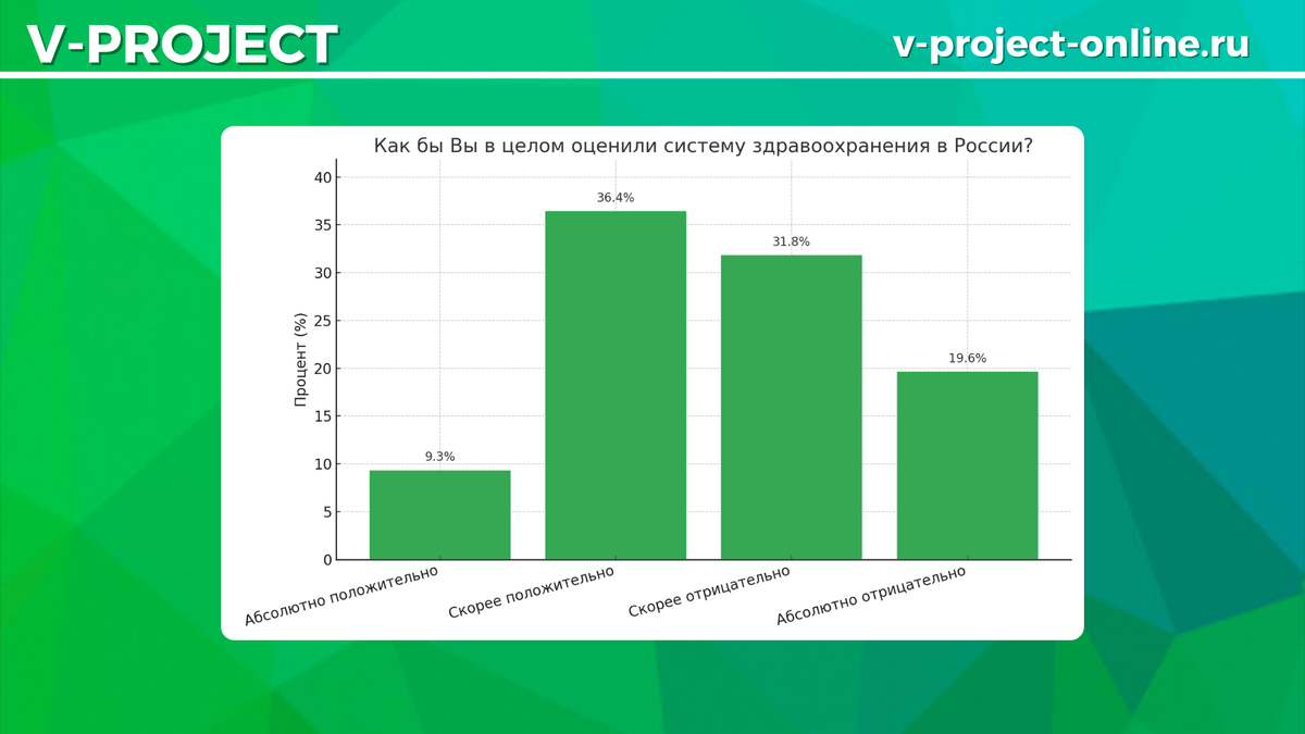 Мы узнали, как россияне в целом оценивают систему здравоохранения в России, и получили следующие ответы: