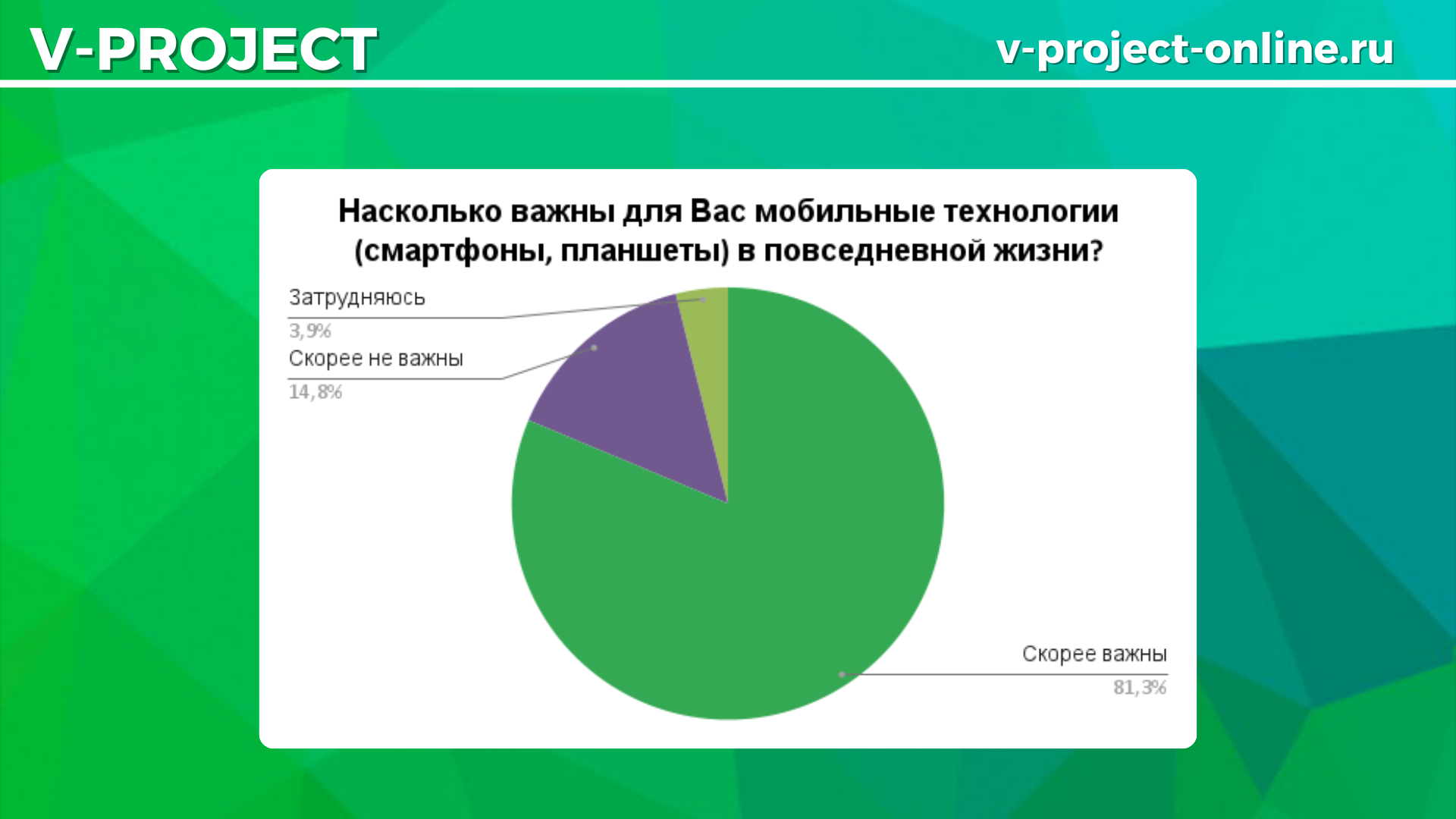 По результатам исследования мы видим, что превалирующая часть жителей страны активно использует мобильные устройства и гаджеты. И люди уже с трудом представляют жизнь без подобных технологий: используют для решения различных задач.