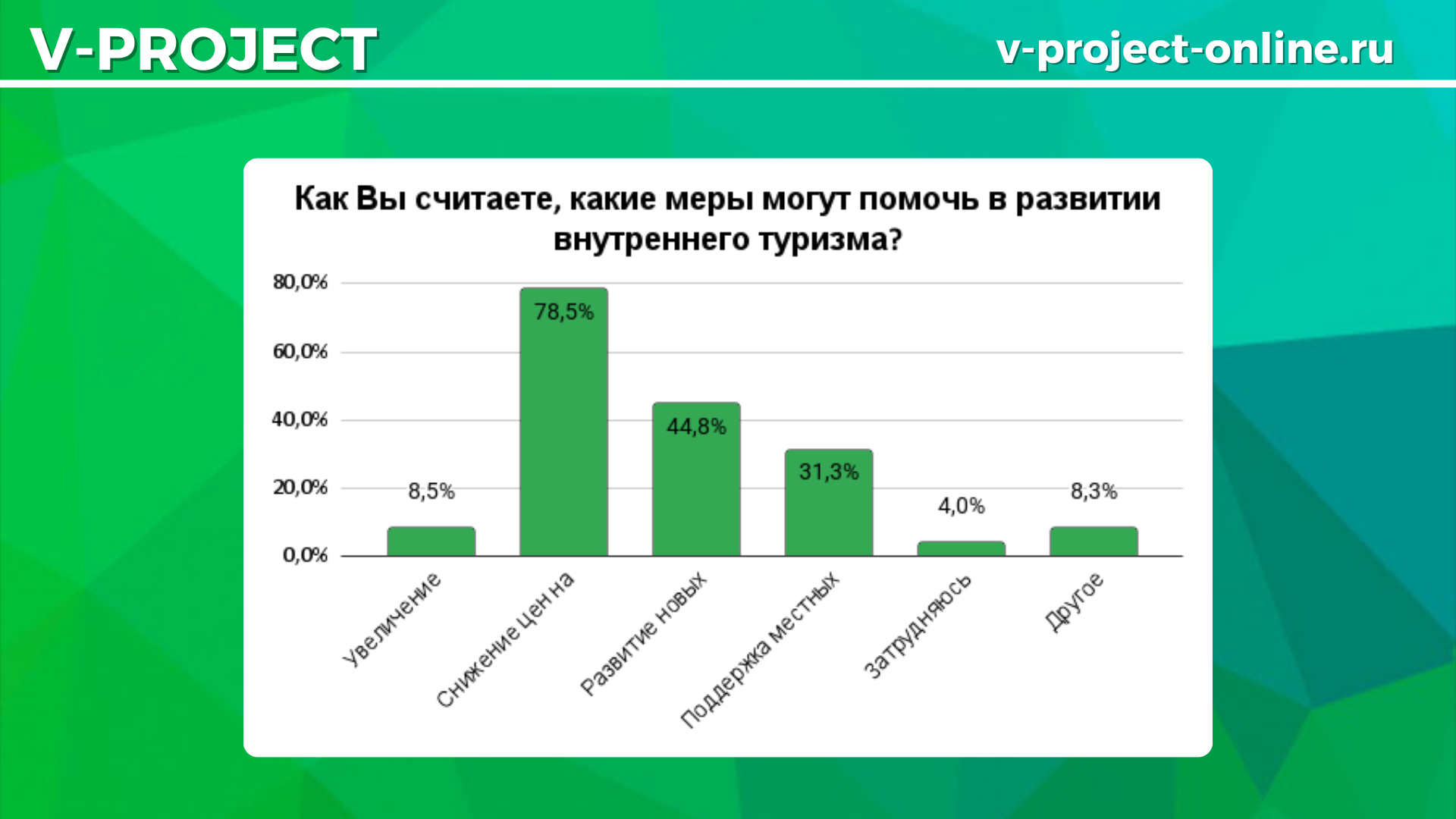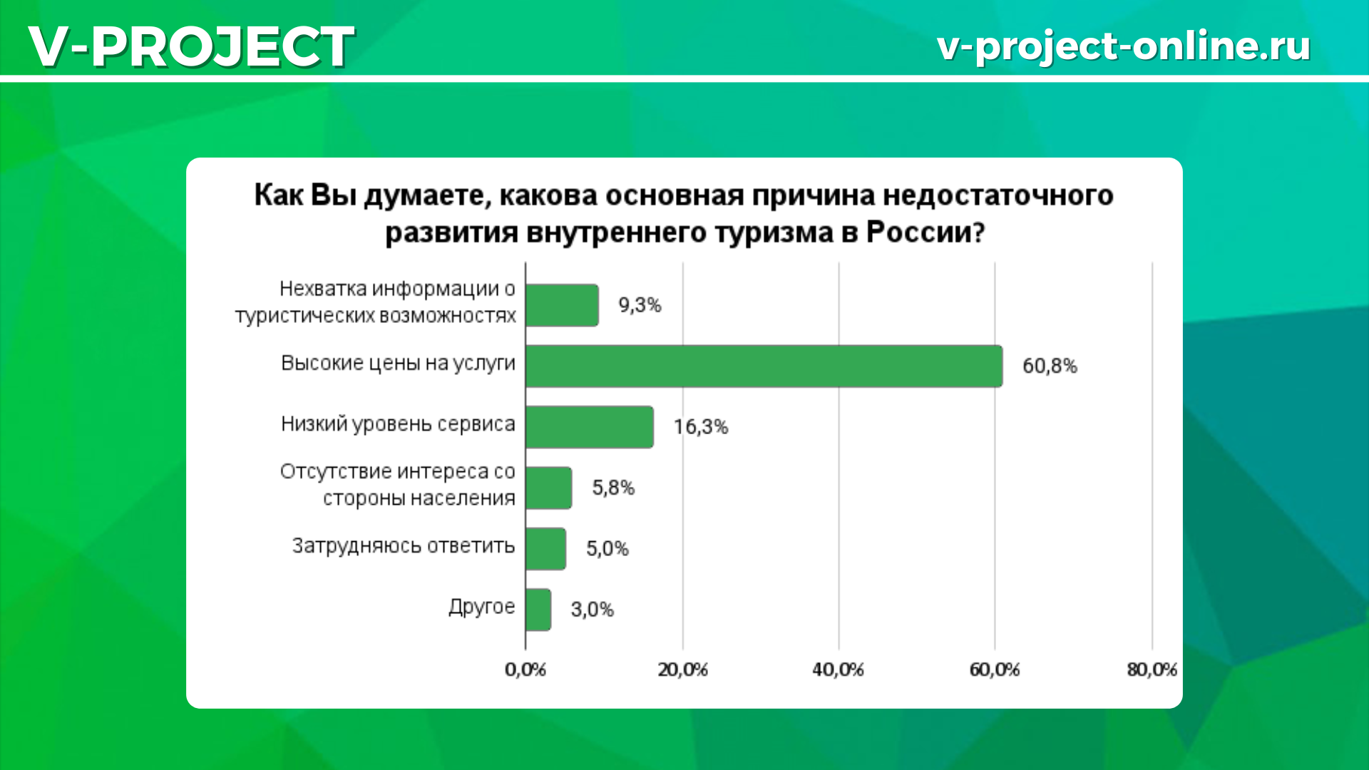 V-Project узнал, что россияне думают о развитии индустрии внутреннего туризма.