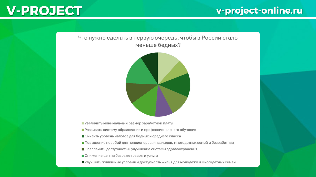 От этого особенно страдают пенсионеры, инвалиды, многодетные семьи и безработные, из-за чего предложение повысить пособия для этих категорий граждан заняло второе место в опросе. За ним следует снижение уровня налогов и увеличение минимальной зарплаты.