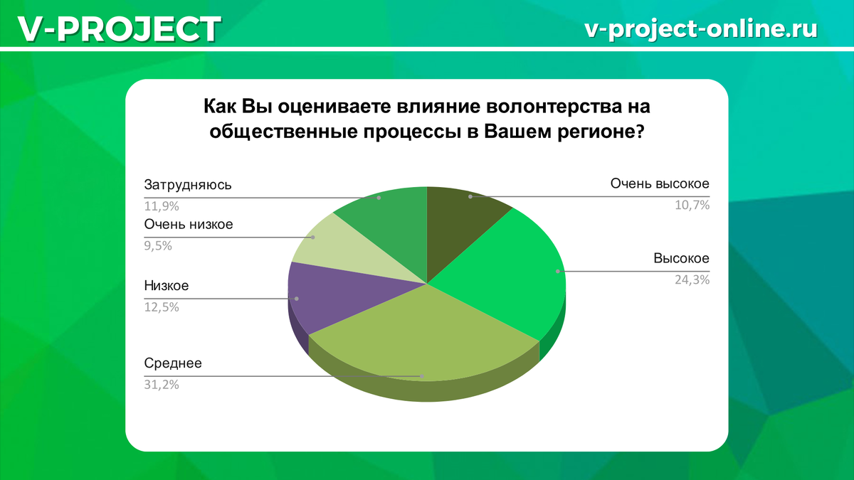 Одной из целью реализации волонтерских проектов является прямое влияние не только на жизни людей, но и обществом в целом. Мы попросили россиян оценить, как добровольческие инициативы оказывают влияние на общественные процессы в их регионе.