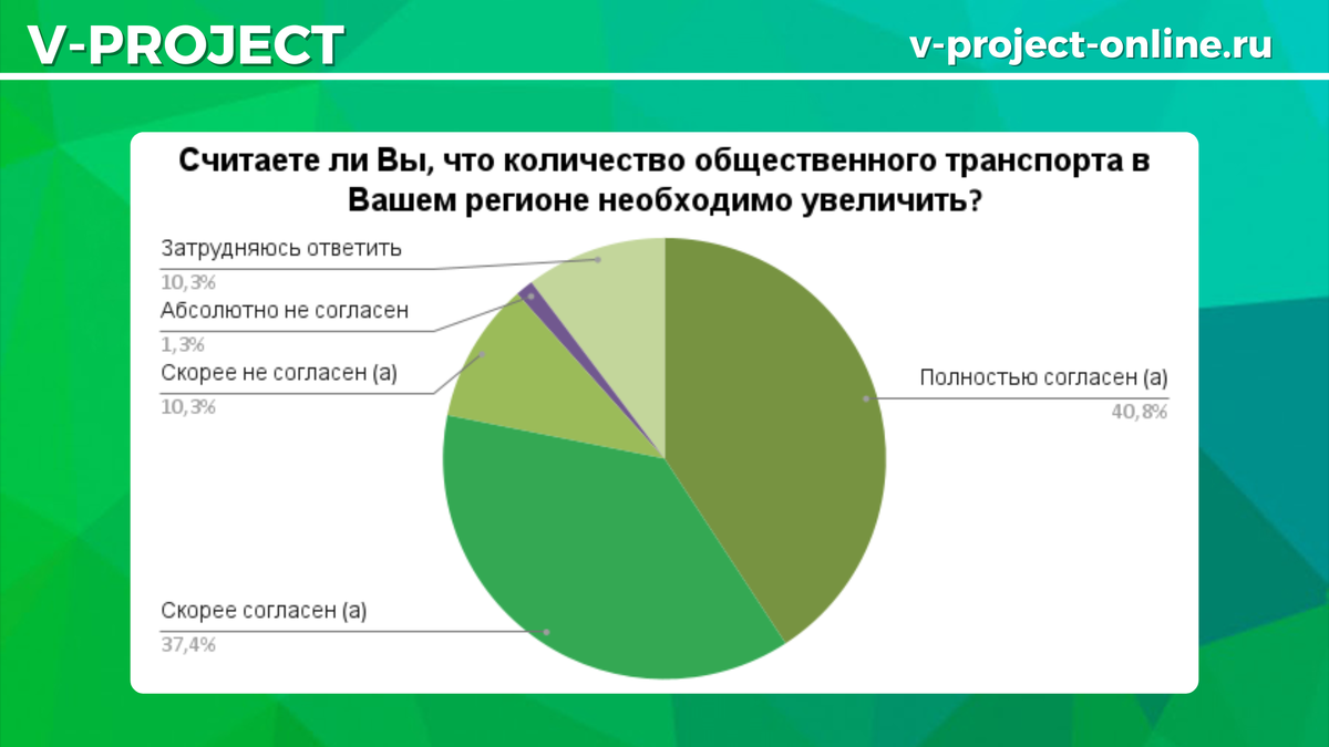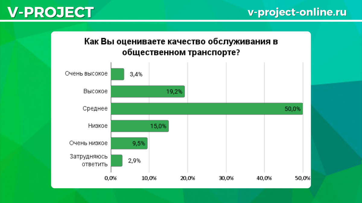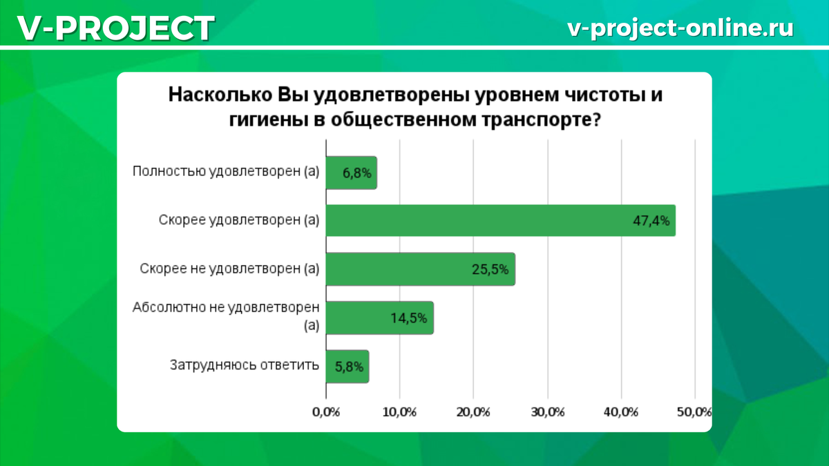 Команда V-Project провела исследование о том, насколько россияне довольны общественным транспортом: его доступностью, безопасностью, чистотой и качеством выполняемой работы. Мы также узнали, какие конкретно улучшения хотят видеть жители.