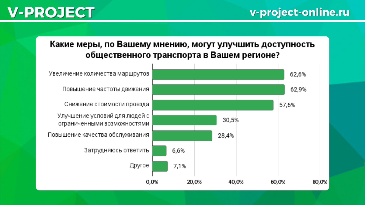 Узнав о том, что сфера общественного транспорта в России на сегодняшний момент имеет ряд некоторых проблем, мы решили узнать, какие меры, по мнению граждан, помогут улучшить доступность общественного транспорта.